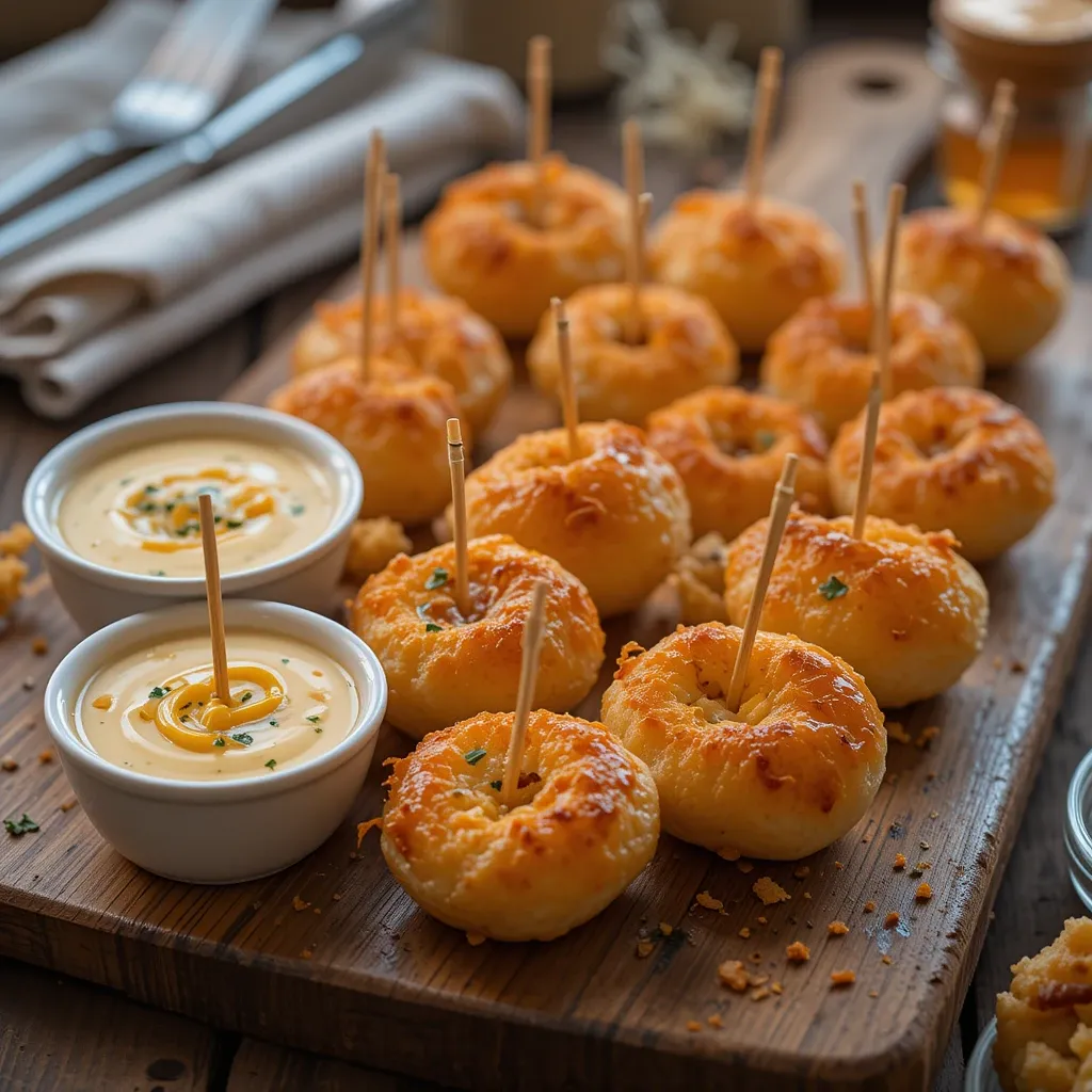 - Insert toothpicks into each ball. Serve warm with dipping sauces like sriracha mayo or honey mustard.