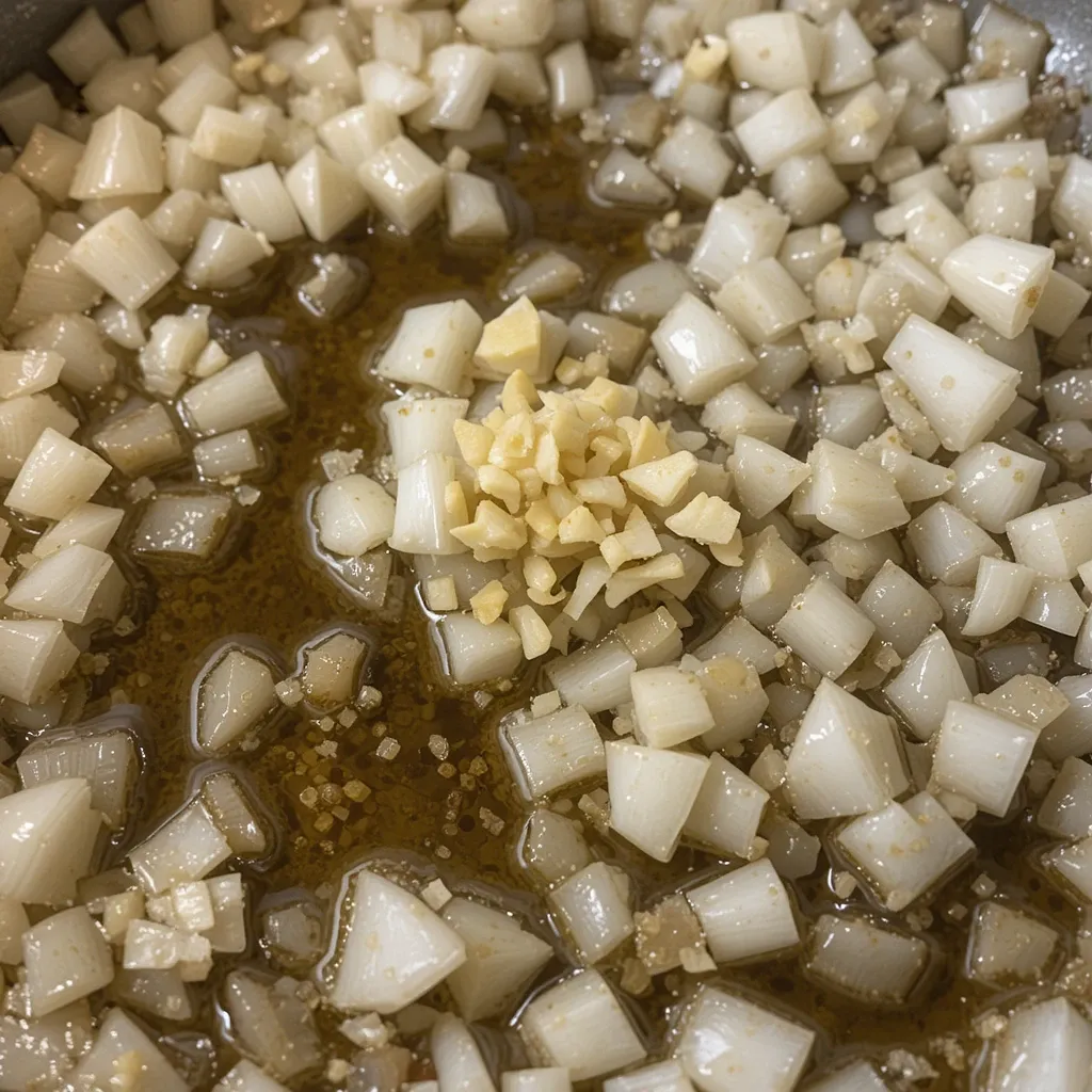 - Heat 2 tablespoons olive oil in a large skillet over medium heat. Sauté 1 medium finely chopped onion until translucent, about 3-4 minutes. Add 2 cloves minced garlic and stir for 1 minute until fragrant.